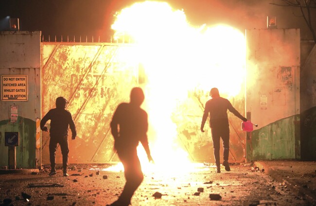 britain-northern-ireland-unrest Nationalists from the mainly Catholic Springfield road area of West Belfast clash with police, Wednesday. Peter Morrison / PA Peter Morrison / PA / PA