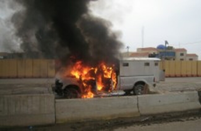 A police truck full of prisoners being transported was set afire by al-Qaida fighters on Wednesday AP Photo