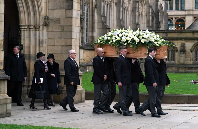 Family, fans and football legends say final goodbyes to Bobby Charlton at Manchester funeral