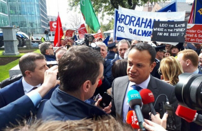 In this video captured by RTÉ reporter Paul Cunningham, a protester can be heard asking the Taoiseach: “Where’s the beef ya vegan ya?”