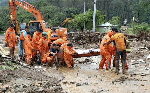The students died as mud and debris engulfed them as they slept in a resort cabin in Chuncheon, about 110 kilometers northeast of the capital Seoul, said Byun In-soo of the town’s fire station. A married couple and a convenience store owner also died.