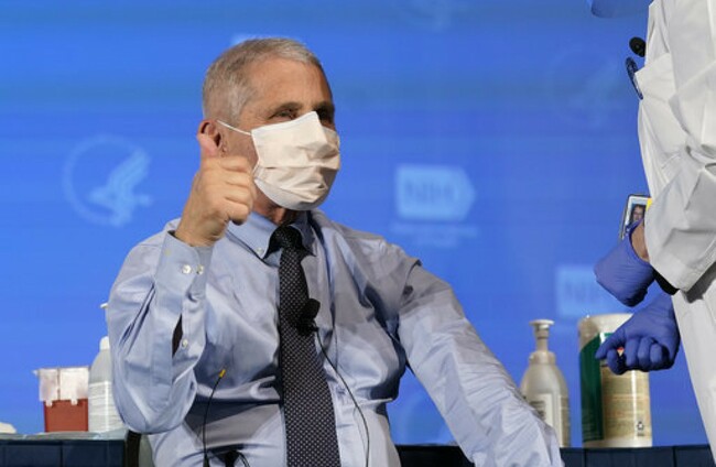 Anthony Fauci gives the thumbs up as he gets the vaccine