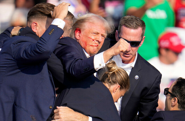 Several shots were fired towards the former US president before he was rushed off stage by Secret Service agents bleeding from his ear.