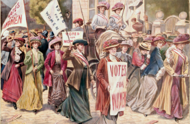 An early 20th century suffragette demonstration. SuperStock/Getty Images