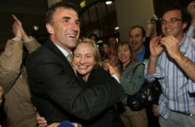 Fianna Fáil's Chris Andrews celebrates winning his Dáil seat in 2007. Andrews believes his party should seek a merger with Fine Gael.