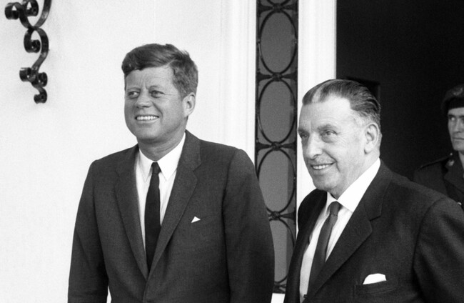 Séan Lemass with JFK (left) in 1963. Malcolm Byrne noted that New York has an airport named after JFK and called on Ireland to do similar. Alamy Stock Photo