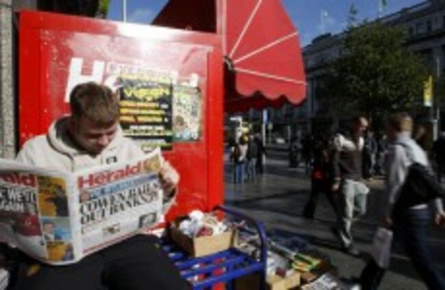 A man reads about the bank guarantee on 20 September 2008. PETER MORRISON/AP/Press Association Images