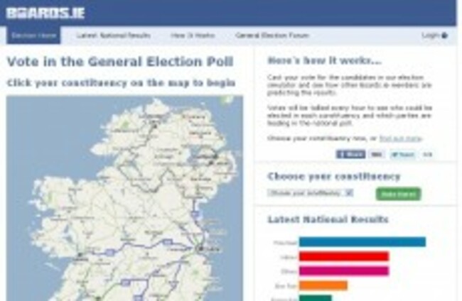 OVER 21,000 USERS of online discussion forum Boards.ie have cast votes in a constituency-by-constituency poll – and given Fine Gael 30.8 per cent of their first preferences.