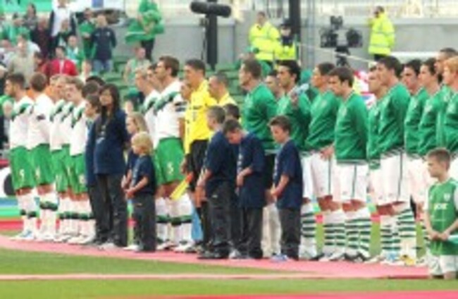 The North and the Republic line-up for a match in May of last year at the Aviva Stadium. ©INPHO/Presseye/William Cherry