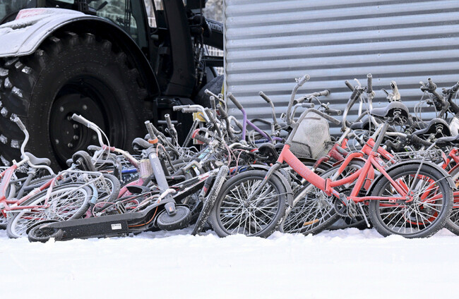 Abandoned bicycles used by migrants lie at the international border crossing at Salla, northern Finland, yesterday Alamy Stock Photo