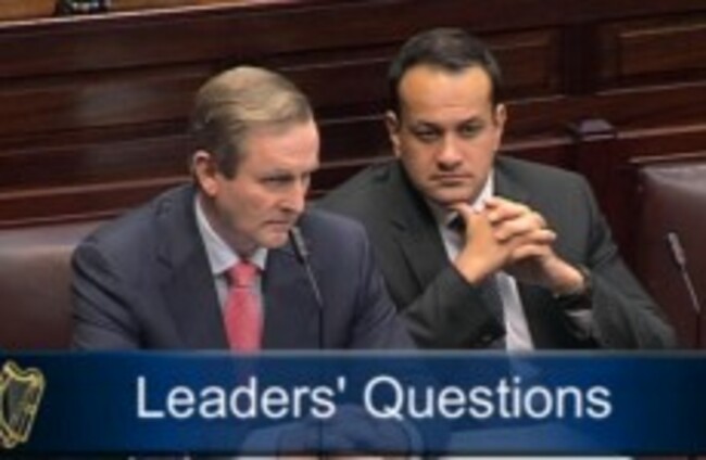 Taoiseach Enda Kenny and Transport Minister Leo Varadkar in the Dáil today Screengrab