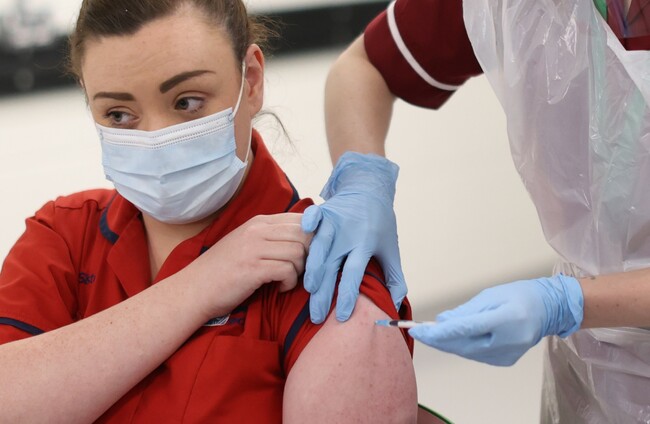 The first dose was administered at approximately 8am at a mass vaccination centre at the Royal Victoria Hospital in Belfast to 28-year-old nurse Joanna Sloan from Dundrum in Co Down.