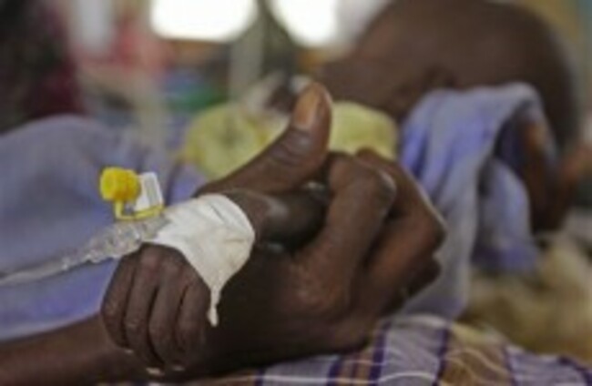 The arm of Mihag Gedi Farah, a seven-month-old child with a weight of 3.4kg, is held by his mother. AP Photo/Schalk van Zuydam