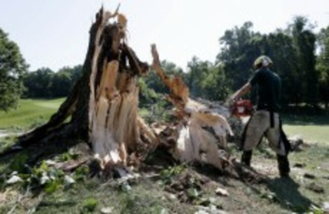 A man uses a chainsaw to clear a storm-felled tree from a golf course in Bethesda, Maryland today. AP Photo/Patrick Semansky/PA