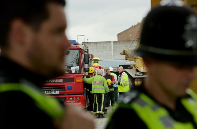 FIVE MEN HAVE died after a wall collapsed at a recycling site in Birmingham, England this morning.