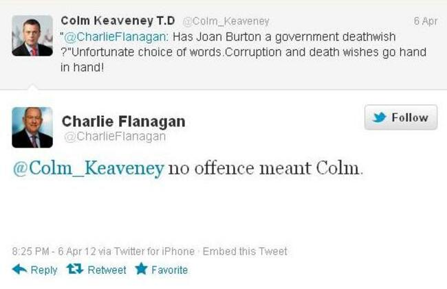 He said he had since spoken to Flanagan having already communicated with him via Twitter where the Fine Gael chairman insisted that no offence had been intended: