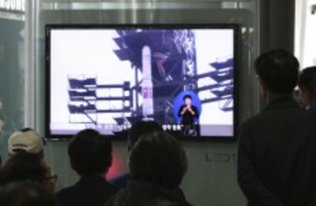 South Koreans watch a TV news program which shows North Korea's Unha-3 rocket at Seoul train station Ahn Young-joon/AP/Press Association Images