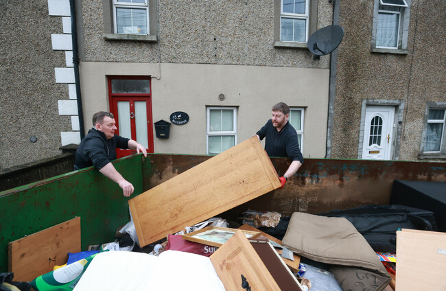 Flooded homes in Bunclody in County Wexford as the River Slaney burst its banks again last night. Photo shows Nicky Caesar and Michael Ralleigh loading household furniture into a skip. Sasko Lazarov/RollingNews.ie
