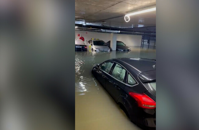The car park under an apartment block complex has flooded, with 15 cars completely submerged.