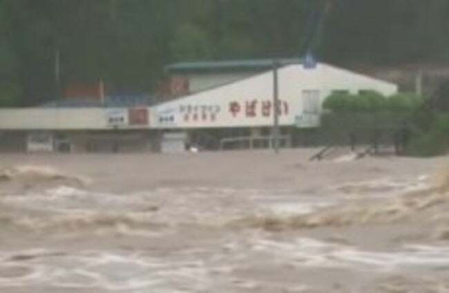 Two men were rescued from landslides but their conditions were not immediately available. One woman was still trapped. I don’t remember any flooding which stretched over such a wide area in our prefecture.