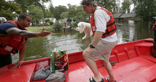 Susan Hedgepeth is assisted along with her dog Cooper by Coast Guard members Gerry Broome AP/PA Images