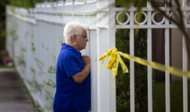 (An unidentified woman looks through a fence near a murder scene. Photo: J Pat Carter/ PA Images)