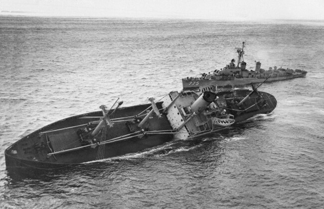 The freighter Flying Enterprise wallows in rough seas, Jan. 9, 1952. AP / Press Association Images AP / Press Association Images / Press Association Images