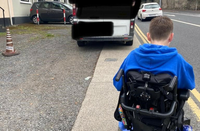 13-year-old James Casserly from Lucan in Co Dublin is forced to take the long route to school because the more direct route is blocked by cars parked on the footpath.