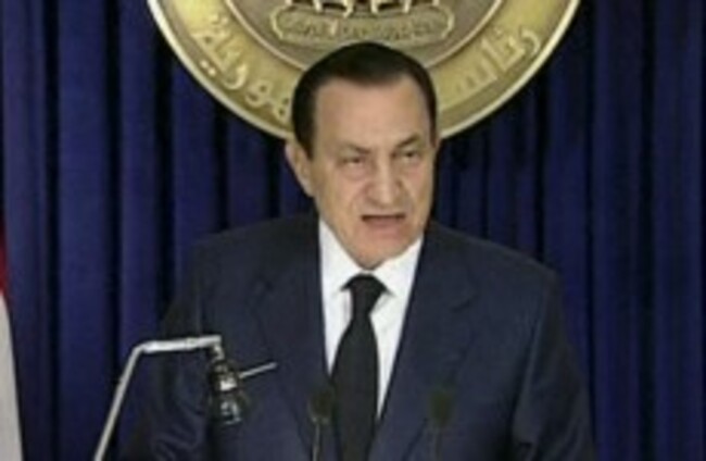Still image from a 1 February Egyptian television address by then-president Hosni Mubarak. AP Photo/Egyptian State Television via APTN