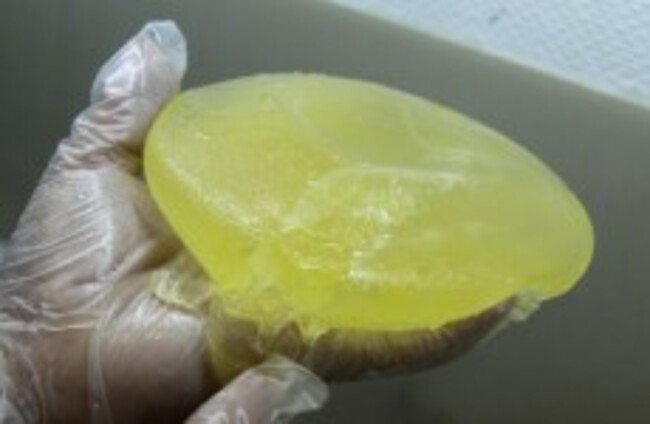 10 January 2012: A faulty PIP implant removed by a surgeon in Nice, France. AP Photo/Lionel Cironneau/PA Images