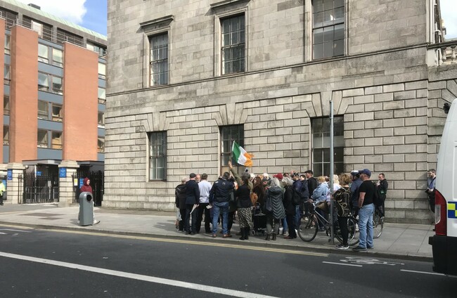 Gardaí did not seek to disperse the crowd, which waited outside the Four Courts for the duration of the short hearing.