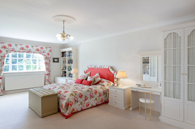 Upstairs there are five bedrooms and the family bathroom. The master bedroom has custom-built wardrobes and a large ensuite with his and hers wash hand basins and a large shower.