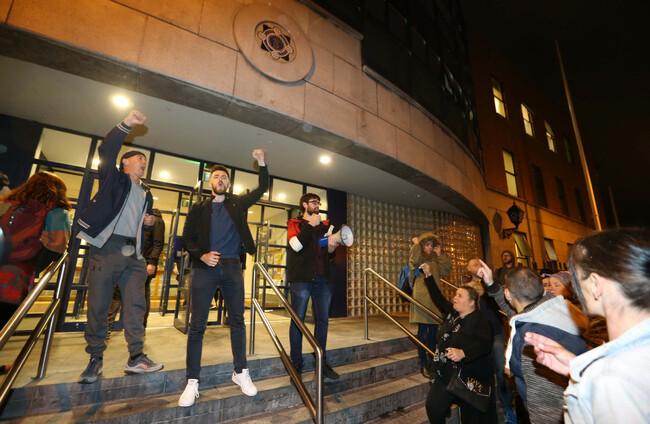 Take Back the City activists outside Store Street Garda Station RollingNews.ie