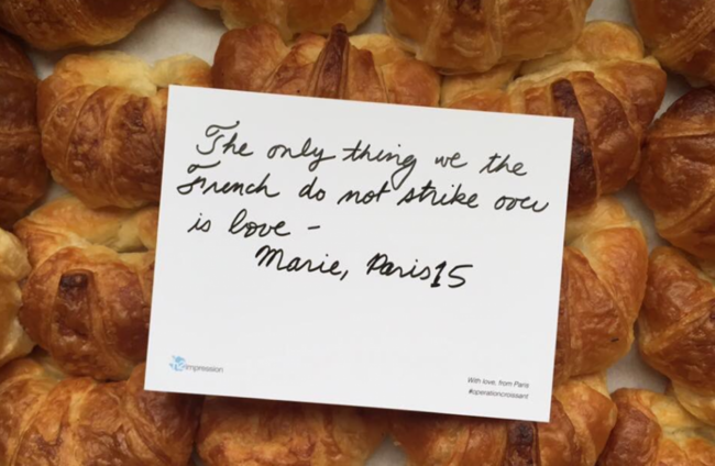 However, they couldn’t pair the letter with a fresh croissant and instead decided to hand them to a homeless shelter – with no political message attached.
