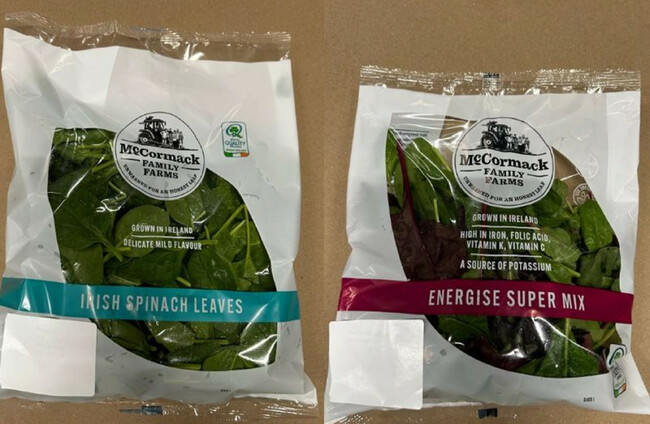 • McCormack Family Farms Spinach (100g, 200g & 250g). Best before dates: 01/08/2025, 02/08/2025, 03/08/2025, 04/08/2025. Batch codes: 205, 206, 207.