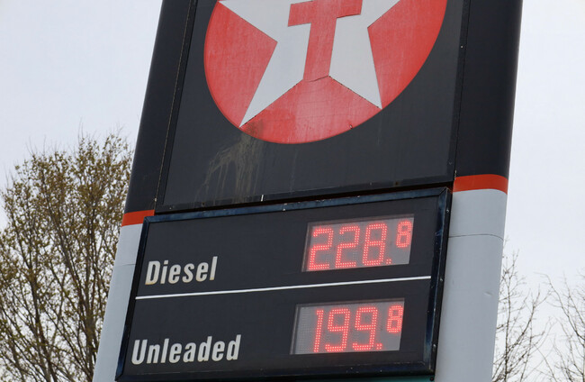 Price displays at Texaco, Rochestown Avenue, Dun Laoghaire filling station forecourt on Monday 23 March. Alamy Live News.