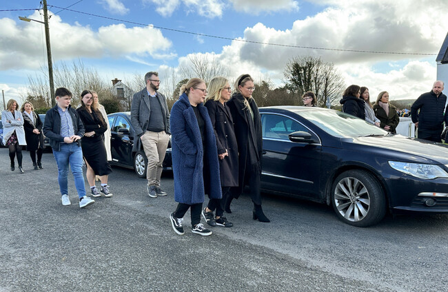 Mourners and family members outside St. Abban’s Church, Doonane, Co. Laois RollingNews.ie