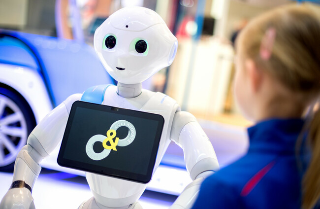 Pepper the robot, speaking to a young girl. DPA/PA Images