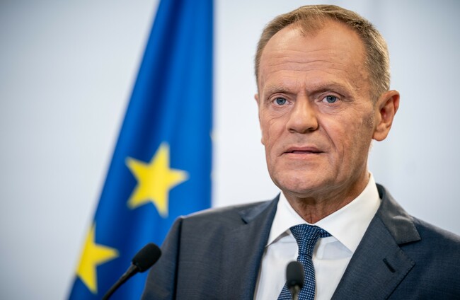 Tusk speaking at a press conference before the start of the 45th G7 summit. DPA/PA Images