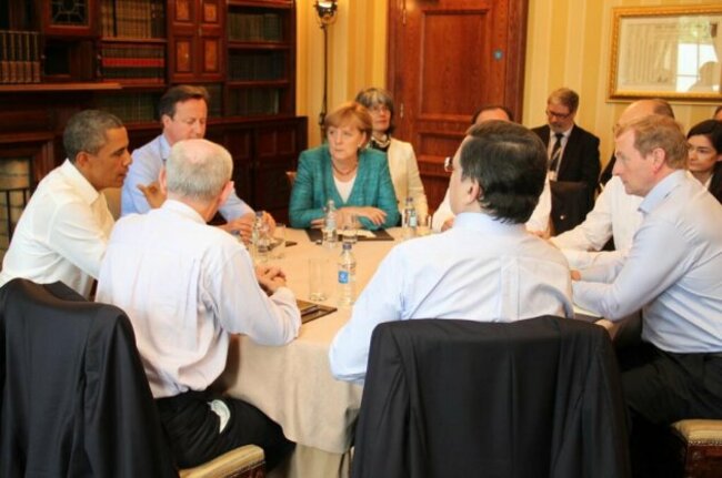 But before formal discussions took place, Barack Obama and four of the European G8 leaders took time to have a quick chinwag with Taoiseach Enda Kenny.