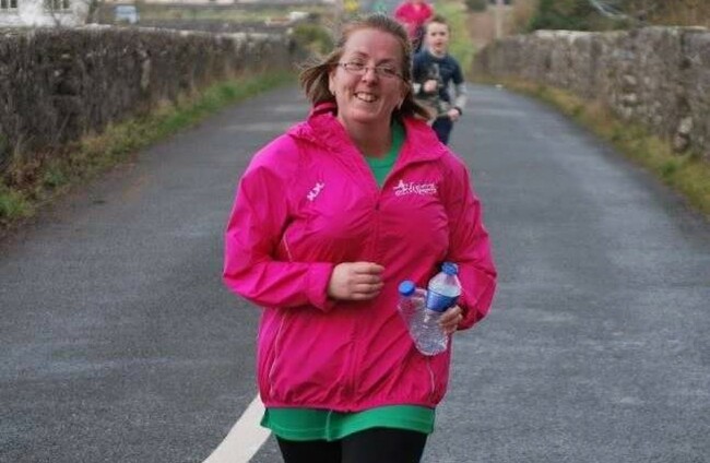 Michelle Morgan at the finishing line of her club's 5k run last February.