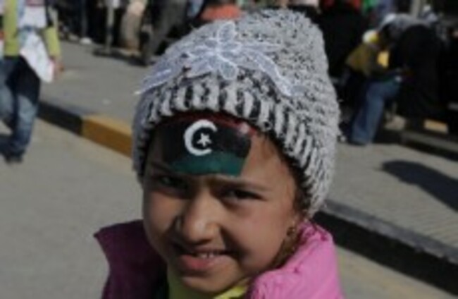 A Libyan girl with her face painted with the pre-Gaddafi era flag takes part in the ongoing protest at the Tahrir square in Benghazi, Libya Saturday, March 12, 2011. Nasser Nasser/AP/Press Association Images