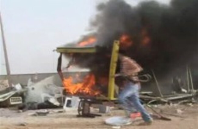 Also Sunday, vandals burned Western embassies and a UN office in the Libyan capital of Tripoli, hours after NATO bombed Gaddafi’s family compound in an attack officials said killed the leader’s second youngest son and three grandchildren.