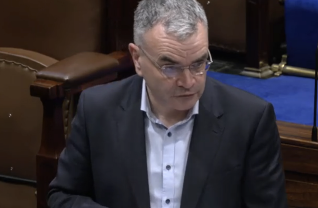 The Gaeltacht Minister Dara Calleary faced questions in the Dáil today about his handling of the Gaeltacht housing crisis Screenshot from Oireachtas TV