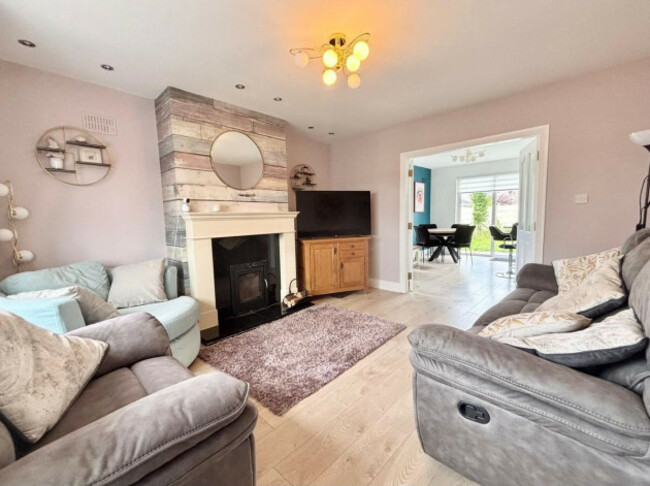 30 Ard Esker is a well-maintained three-bed home in a quiet cul-de-sac within walking distance of Athenry town. Upgraded and already decorated throughout, this turnkey 104 m² property offers a bright entrance hall with a striking staircase, a spacious living room with marble fireplace and stove, and then a remodelled kitchen with quartz-topped island, patio doors and contemporary finishes. Other features include a utility room, modern guest toilet and a recently installed boiler.