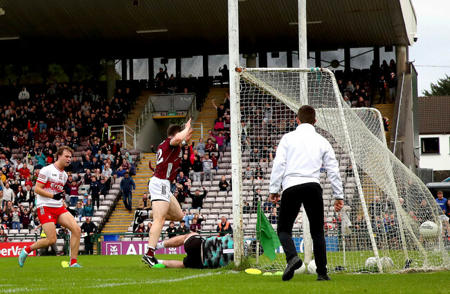 GALWAY’S IMPRESSIVE RECORD against Ulster counties under manager Padraic Joyce continued in Salthill this evening as Derry paid a high price for the first-half dismissal of All-Star Gareth McKinless.