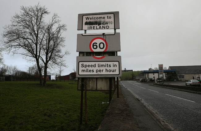 A vandalised 'Welcome to Northern Ireland' sign at the border between Northern Ireland and the Republic of Ireland in Middletown, Co. Armagh. PA Wire/PA Images
