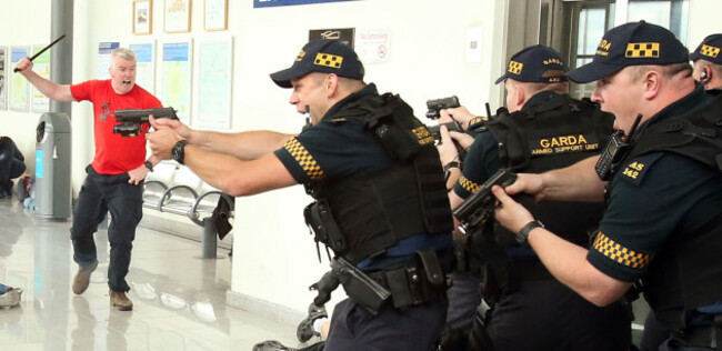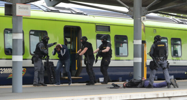 Gardaí then moved to a train outside on the platform where they played out another scenario in which one of the suspects was holding passengers hostage. Negotiations with the man were unsuccessful and armed units moved in and shot him.