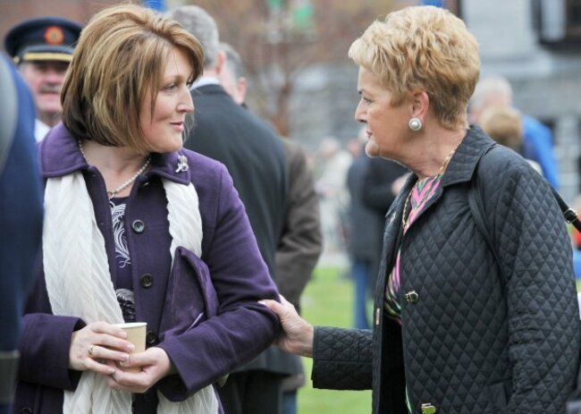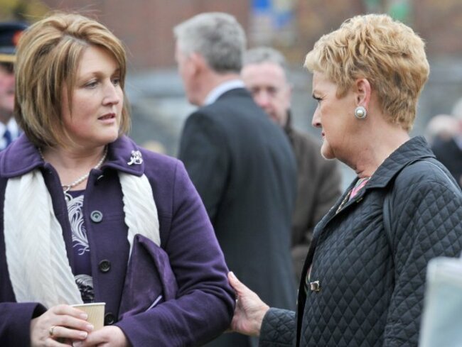 Widow of murdered Garda Adrian Donohoe, Caroline (left), pictured with widow of murdered Garda Jerry McCabe, Ann at the ceremony to remember members of an Garda Siochana killed in the line of duty at Dublin Castle.