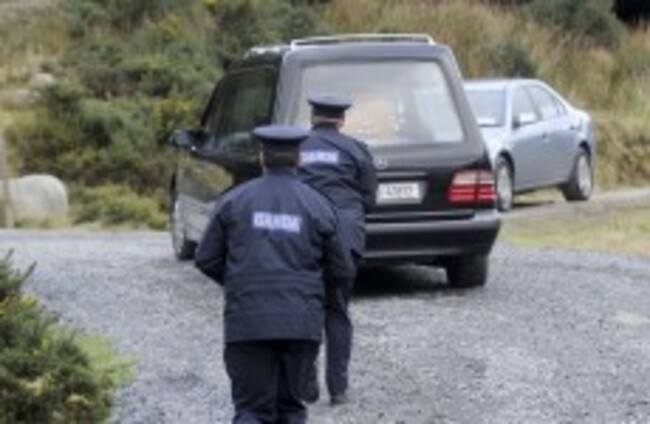 Gardaí follow the hearse at the scene of the body's discovery on Monday. Laura Hutton/Photocall Ireland